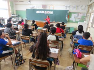 10月3日、4年生は、愛知県原水爆被災者の会の方をお招きし、お話をうかがいました。4年生は、6月に国語で「一つの花」の学習し、戦争の悲惨さを感じ取ったところです。