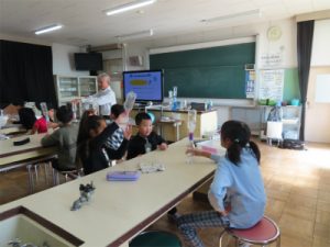 10月27日、4年生は出前授業「ストップ温暖化教室」の授業を行いました。愛知県地球温暖化防止活動推進員さんが講師となり、クイズや実験などを通してわかりやすく説明し、地球温暖化や水について楽しく学べる授業をしていただきました。