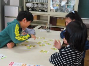 後半は水について勉強しました。身近なところで、公衆トイレに貼ってある「備え付けの紙以外使用しないでください」という表示の意味について、実験を通して、トイレットペーパーは水ですぐ溶けるけれど、ティッシュペーパーは溶けないことが分かりました。また、動画やカードゲームを通して、海に漂流するたくさんのごみ(特にマイクロプラスティック)の問題について知りました。