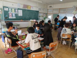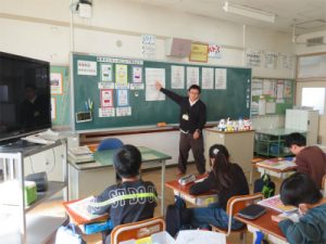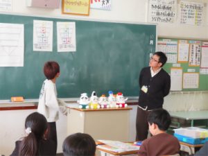 10月29日、5年生は調理場の栄養教諭の先生方が来校されて、食事のバランスについて考える授業が行われました。