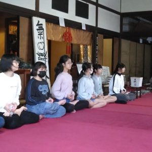 お抹茶をいただいた後、庭や茶室の説明を聞き、座禅を行いました。心を無にし、空気がピーンと張るような時間を過ごしました。