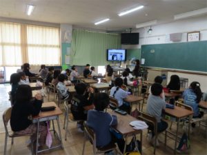その後、校長先生から「クラスの仲間は一人一人、考え方や気持ちも違うけれど、みんなで1つのことを決めようとするとき、みんなで気持ちや考え方を合わせようとしますね。そうしていくことで、みんなが気持ちよく過ごせ、みんなが幸せな気持ちになることができます」という人権に関するお話を聞きました。