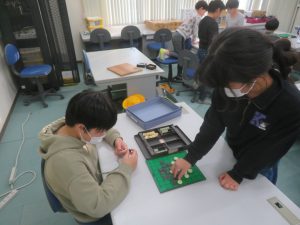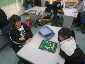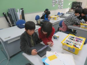 12月3日(水)の6時間目に、クラブ活動がありました。今年度のクラブ活動も後半となり、それぞれの活動にも慣れ親しんでいる様子でした。高台寺パソコンクラブでは、レゴでつくられた「ドライビングベース」にプログラミングを行い、課題を解決する活動を行っていました。二人一組で何度かドライビングベースを動かしながら動き方を修正して、ブロックをコースの外に運ぶという課題に競って取り組んでいました。ボードゲームクラブでは、自分たちでつくるオリジナルすごろくを完成させて、楽しく遊んでいました。オセロにも取り組み、後先のことを考えながらどこに石を置くか考えている様子でした。