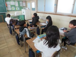 朝会後、1年生の教室をのぞくと、今年の目標を真剣に考え、丁寧に紙に書いていました。