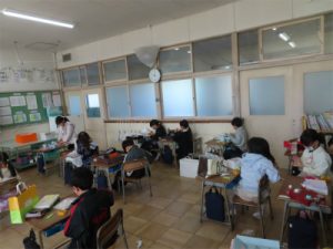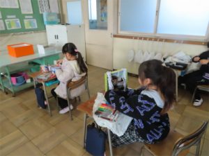 1年生は図工の時間、自分にとって「たいせつなもの」を入れるために、空き箱を使って「たいせつボックス」を作りました。子どもたちは、自分の入れたいものを想像しながら、箱の形や色を捉え、シールやモール、綿などを使い、工夫して飾りつけをしました。試行錯誤する中で、空き箱、はさみ、接着剤などの扱いにだんだん慣れてきたようです。