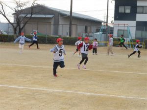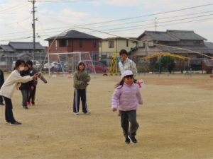 1月13日に縦割り班でふれあい遊びを行いました。冬らしい曇り空でしたが、風がなかったので寒さをあまり感じることはありませんでした。