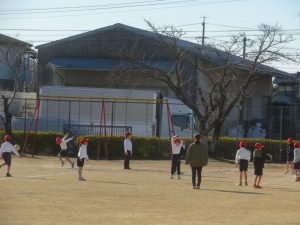 2年生の体育の授業では、大縄跳びやサッカーボールを使って運動をしていました。