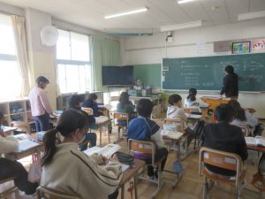 5年生の算数の授業では、単位量あたりの大きさの学習をもとに、どの動物が走るのは速いのか、複雑な計算をしながら考えていました。