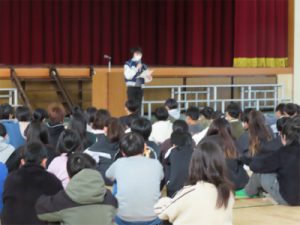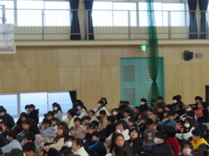 その後、全校児童で校歌を歌い、続いて来年度の児童会テーマの募集について、新児童会長から呼びかけがありました。