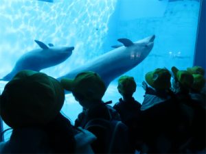 名古屋港水族館では、イルカのショーを見たり、カメ・ペンギン・チンアナゴなど、子どもたちに人気の海の生き物をじっくり観察することができました。