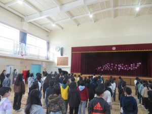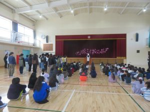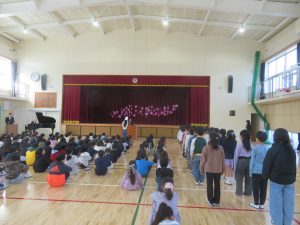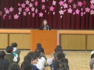 校長先生からは、サクラの花が一年かけて準備をし、春に美しく咲くことを例に、春休みにはこの一年を振り返り、進級に向けて気持ちを高めてほしいというお話がありました。