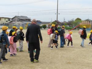 下校時には、担当の先生が付き添い、子どもたちと一緒に通学路の確認をしました。