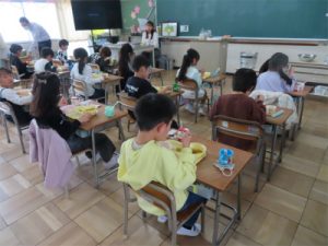 1年生にとっては、小学校生活で初めての給食です。嬉しそうに、そして美味しそうに給食を味わっていました。